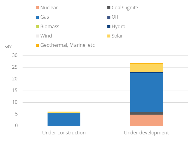 The pipeline of projects for new power generation capacity under construction amounts to 0.3 GW.
