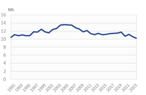 Coal consumption halved between 2003 and 2023 to below 3.5 Mt.