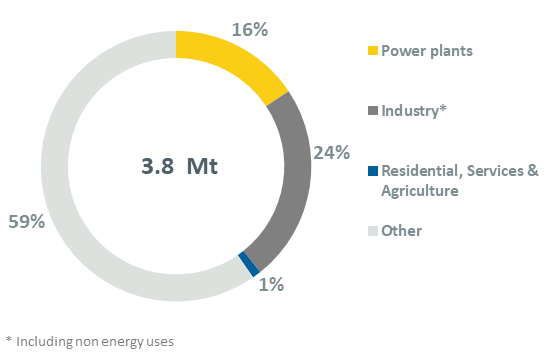 Industry is the main coal consumer, with a share of 83% (42% in 2009), followed by power plants with 16%, compared to 44% in 2009.