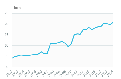 Since 2017, gas consumption has increased by 3%/year, reaching 21 bcm in 20232024.