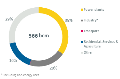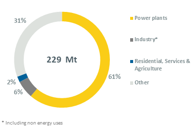 In 2024, gas represented the largest share of consumption (55%), followed by oil (20%), coal (15%), nuclear (7%), hydro (2%), and biomass (1%). These market shares are relatively stable.