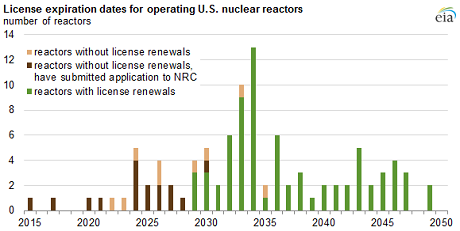 The NRC is now reviewing license renewal applications for 17 reactors and will receive new license renewal applications from seven additional reactors between 2015 and 2018.