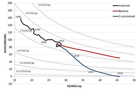 Carbon intensity of the power sector, EU-27, 1980-2050